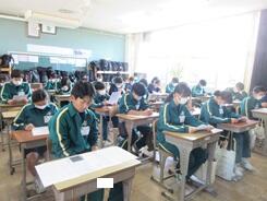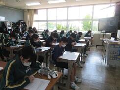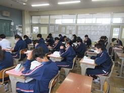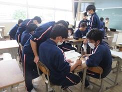 今日の5時間目、3年2組の英語の授業を見に行ったとき、一人の男子生徒の弾丸インプット用のプリントを前からのぞき見していました。ちょっとして、弾丸インプットが終わったその生徒は、プリントを180度回転させ、私の見やすい方向にプリントを向けてくれました。ちょっとした気遣い、嬉しいですね。