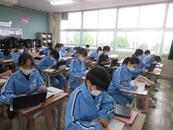 俳句の読み方・味わい方で、三句の内容を捉える授業が進められていました。