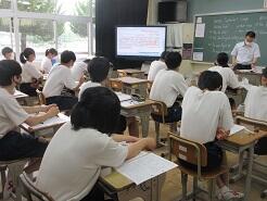 昨日の5時間目、1年3組の技術の授業が終わり、技術室から前校舎へ戻ってくる通路でとてもよい光景がありました。それは、すごい雨が降っている中、一人の男子生徒が通路のドアを支えて、多くの生徒が素早く校舎の中へ入れるようにしていました。素晴らしい気配りだと感じました。