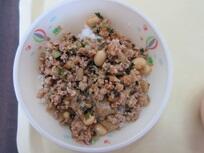 今日の給食は、ご飯、牛乳、ハンバーグおろしソース、ごぼうサラダ、茎わかめの中華スープです。高根沢町で生産されたものは、にんじん、米です。今日もたいへんおいしく頂きました。