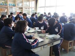 「未来へ」の詩で、詩に描かれていることを、連ごとに考える授業が進められていました。