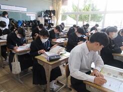 これから始まる数学の授業のガイダンスのあとに、レディネステストに取り組んでいました。