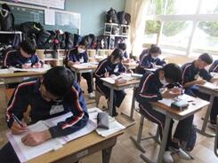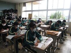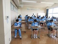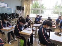 今日の朝、教室を見て歩いていると、3年生で3名の女子が、2年生で1名の女子が、真剣に勉強に取り組んでいました。ある生徒は、今日のテストのために、ある生徒はいつも早く来て勉強しているとのことでした。生徒たちの真剣に勉強に取り組んでいる姿を見て、とても嬉しくなりました。(姉妹で取り組んでいる生徒もいました。)