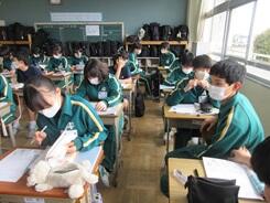 ファイルや教材の配付のあとに、簡単な質問に答える授業が進められていました。