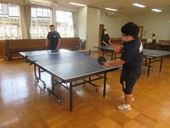 卓球で、楽しそうにゲームを行っていました。