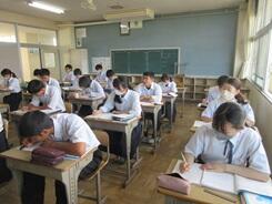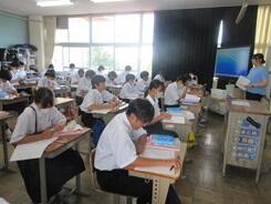 最近、授業はもとより、生活態度もちょっと気になる2年生男子生徒がいました。そして今日、授業を見て歩いていると、がんばってプリント学習に取り組んでいる姿が見られました。そして、「職業人に聞く」では、講師案内役を務め、講座では質問もしていました。この生徒の頑張っている姿が見られ、安心するとともに嬉しくなりました。