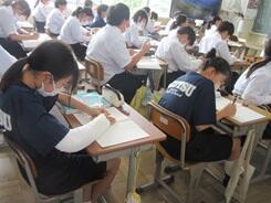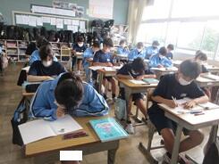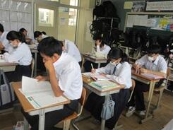 今日の朝、出勤すると(7:10頃)、後半クラスの自転車置き場に、1年生男子生徒がいたのであいさつした後に、早いので、何かあるのかと聞くと「勉強しようと思って早く来ました。」という回答でした。その後、教室をまわっていると、1年4組で英語の勉強に取り組んでいるその生徒の姿がありました。がんばっている1年生です。褒めてきました。