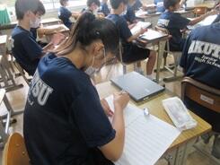 レポート作成で、調査結果と考察をまとめる授業が進められていました。