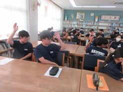 今日の委員会の時間、町図書館ビブリオバトル部の皆さんが来校し、図書委員を対象に、ビブリオバトルのデモンストレーションを行ってくれました。3名のバトラーが順番に、お勧めしたい本を制限時間内にアピールし、最終的にどの本が読みたくなったかの多数決で勝負を決するものでした。今回の経験を、図書委員の皆さんが今後どのように生かしていくのか楽しみです。