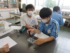 電解質の水溶液に電流が流れた後の変化について実験により確かめて、考察していました。
