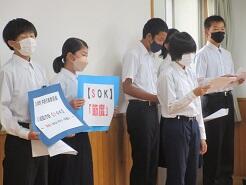 今日の朝、2年生が学年集会を実施しました。内容は、学年代表委員が中心となって、日常生活をふりかえり今後どのように生活していくかを考えていました。とてもよい取組だと思いました。