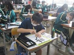卒業記念作品の篆刻づくりが順調に進み、試しに押印している生徒もいました。
