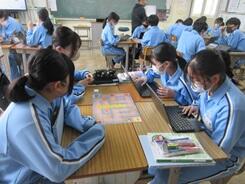 「魔王」を鑑賞して、その魅力をスライドにまとめてタブレットで提出していました。