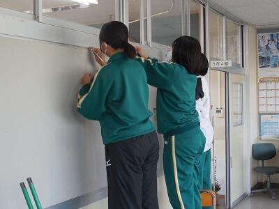 3年生は進路先が決定している生徒が午前中、教室や廊下を清掃しています。「飛ぶ鳥跡を濁さず」のことわざのように一生懸命働いていました。