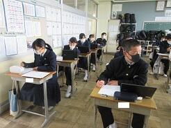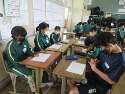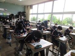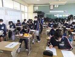 修学旅行の2日目の夜、5組の女子生徒2名が担任の先生を呼びに来たときに自分が対応しました。その時、的確な敬語を使って話しかけてきました。とても気持ちがよく、さすが阿中生だと感じました。疲れが少し和らいだ一瞬でした。