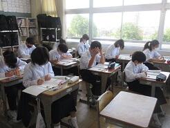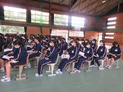 今日の2年生の戦争体験講話が終わった後の片付けを、2年2組が実施していました。その様子を見ていると、一人の女子生徒が周りに的確な指示を出して、てきぱきと働いているのが目にとまりました。名前を聞いて褒めるとともに、担任にも褒めてくださいと伝えました。褒めることは、やっぱり気持ちがいいものです。
