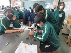胞子で増える植物の、細かいつくりについて観察していました。
