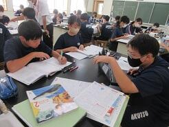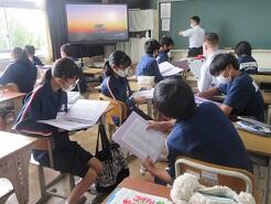 英語で書かれた日記を読んで、出来事や筆者の気持ちを読み取る授業が進められていました。
