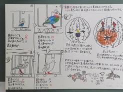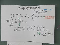 ハトが首を振る理由の、フリップのまとめをしていました。