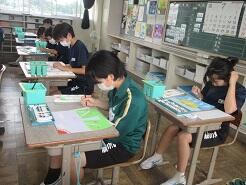 ポスター作成で、自分の作品を丁寧に彩色していました。