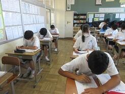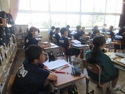パワーポイントを使って、語順の聞き取りテストを実施していました。