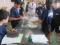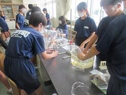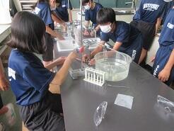 気体を発生させ、その気体が何かを調べる実験に取り組んでいました。