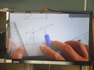 タブレットで自分の顔の写真を撮って、自画像のアイデアスケッチに取り組んでいました。