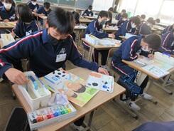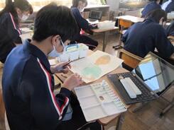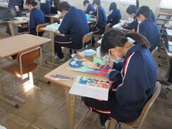 自画像の着色が順調に進んでいました。もう少しで完成する生徒もいるようです。