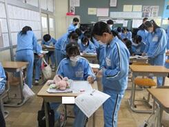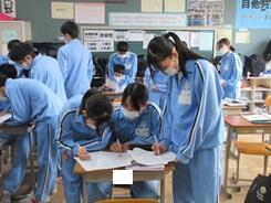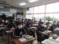 昨日の5時間目に、県・町教育委員会から指導者を招いて1年1組と3年4組で研究授業を実施しました。教職員も頑張っています。とてもよい研修になりました。