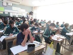 文法、漢字等の復習で、聞き取りテストに取り組んでいました。