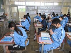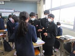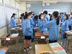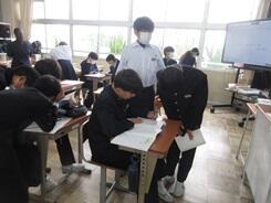 今日の1時間目、授業を見て歩いて3年3組に入りました。そして教室の一番後ろを通って窓際に移動しようとした時、1人の男子生徒が椅子をちょっと前に引いて、歩く通路の幅を少しだけ広げてくれました。そんなちょっとした優しさが、とてもうれしく感じました。みんなが、こんなちょっとした優しさをもって生活したら、よい学校になるだろうと思いました。