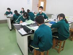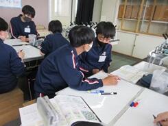 体細胞分裂の進み方についてまとめ、その後グループで発表していました。