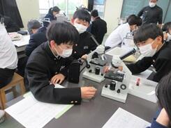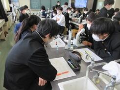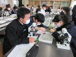 ニンニクの根を使って、細胞の増え方を観察していました。