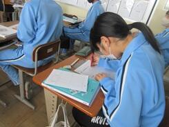 ブックカバーづくりに取り組んでいました。仕上がった生徒もいました。