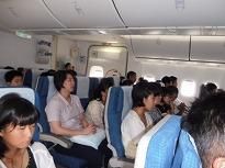 ***行きの飛行機に乗っている総時間は約13時間。 椅子に座ったままで、仁川空港を飛び立ち「ゴーゴー・・・」と連続する大きなジェット音を聞きながら、団員生徒たちや引率職員は、寝つけないままの機中泊で海外派遣2日目を迎えました。引率したフィジー出身のレオーネ先生は、「来年、日本からフィジーへの直送便が計画されています」と言っていました。