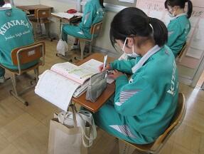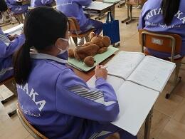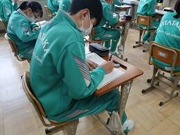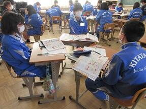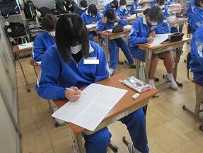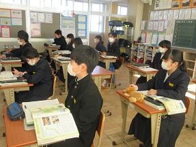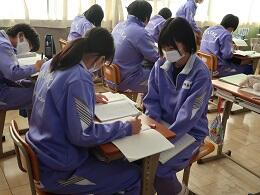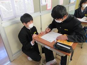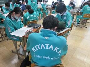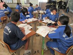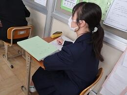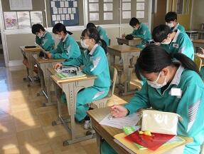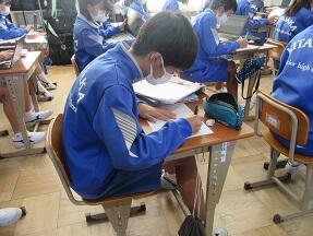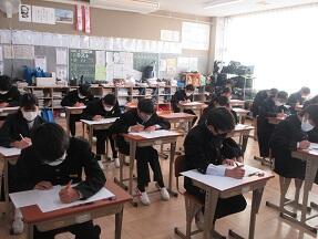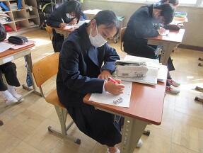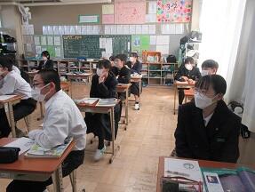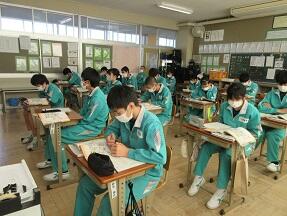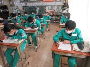 合唱コンクールのDVDを観て、ふりかえりを行っていました。3年2組の合唱、とてもよかったと思います。