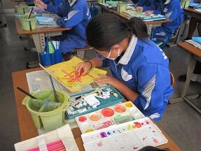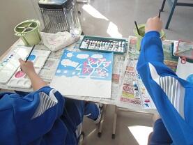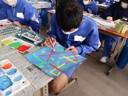 「絵文字」の作品で、色と色の区切りを意識して丁寧に着色していました。
