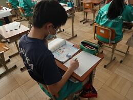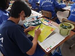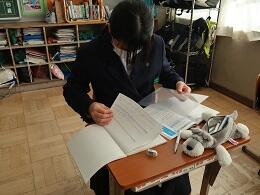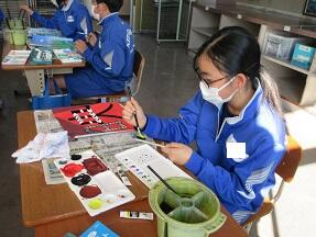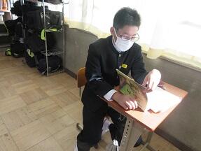 ブックカバーづくりが順調に進み、出来上がった生徒もいました。なかなかの出来映えです。