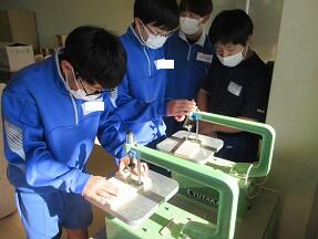 グループごとに水に溶けた物質をとり出す実験が進められていました。