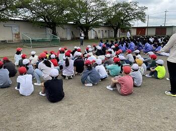 6月4日(火)に東小学校の5・6年生と合同で、交通安全教室を実施しました。今回は、プロのスタントマンによる模擬交通事故の実演(スケアード)を見学し、交通事故の恐ろしさや注意すべき交通マナー等を学びました。これから梅雨の季節になります。スリップや前方不注意等による交通事故が多発する時期となります。ご家庭においても朝の出がけに一言「交通に気をつけてね!」とお声掛けいただけるとたいへん助かります。