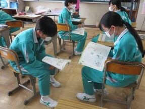 本文理解の後に、ワークや学習プリントに取り組んでいました。