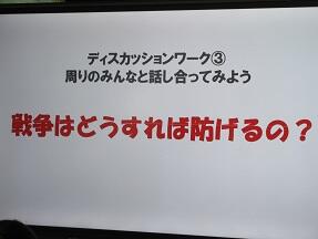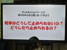 「傍観者でいいのか」という読み物資料を使い、いじめのない世界について考えていました。