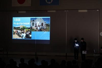 海外派遣事業に参加した生徒の報告会です。映像を通して感想を伝えてくれました。