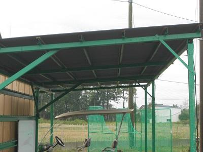 【校内散策】 台風15号の際、野球場バックネット裏の屋根が強風で飛ばされていましたが、野球部の保護者の方が中心となり、きれいに修繕していただきました。ありがとうございました。
