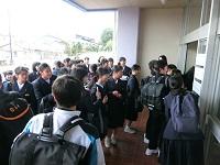 昨日は下校時間帯に急に雨が降り、中にはレインコートを着用せず、濡れたまま下校した生徒も見られました。今、インフルエンザが県内で流行していると聞いています。健康には十分留意してほしいですね。