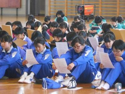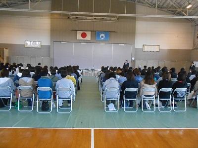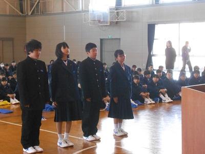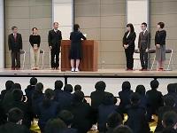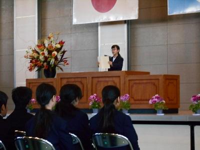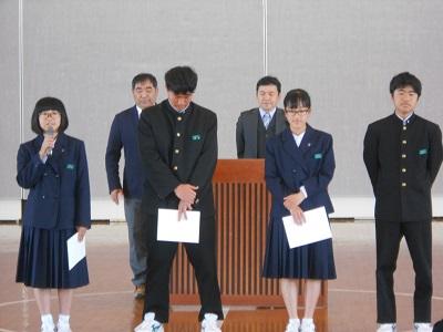 式の前に2年前に那須岳の雪崩によりお亡くなりになった7名の高校生と1名の教員の御冥福をお祈りし、1分間の黙祷を行いました。その後、異動される先生方から学校の思い出や生徒への期待のことばをいただきました。春休みにもかかわらず、多くの生徒が体育館に集合し、異動される先生方のお話を涙ながらに聞いていました。異動される先生方の今後の御健康と御活躍を御祈念申し上げます。