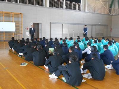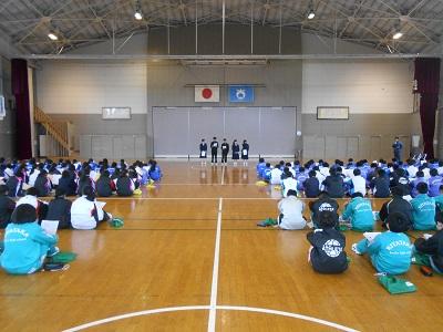 【全校集会】 5時間目に全校生を対象に「学校の規則」について確認しました。生徒会役員が規則の詳細について説明してくれました。安全で健康的な生活を送るためには規則を守ることが大切です。一人一人が本校の生徒として自覚を持って生活してほしいです。