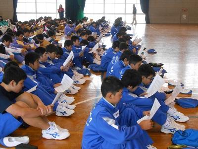 今日は、各学級委員長へ「任命書」の伝達式がありました。3年生は全校生の前で豊富を述べてもらいました。また、身体計測も行われました。この中学生の時期は大きく体格(身長・体重)が成長します。男子では20cm以上伸びる生徒もいます。この時期は心も一緒に成長してほしいですね。