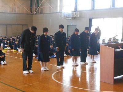 今日は、「離任式」を行いました。春休み中に行うのは今年度が初めての取り組みでした。例年、4月中旬に行っていましたが、卒業した3年生が参加できるための配慮と異動した先生方の勤務状況を鑑み行いました。