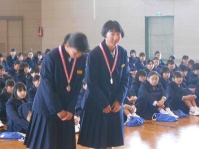 都道府県対抗全日本中学生ソフトボール大会で見事3位に入賞し、銅メダルを授与しました。